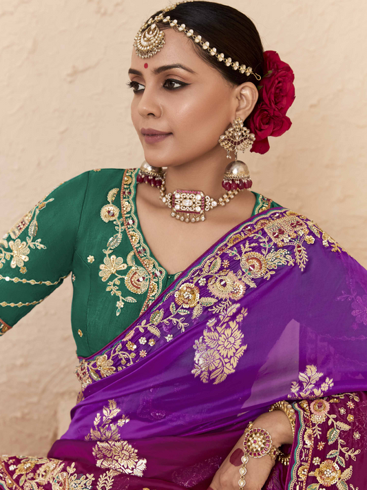 Dhiyona KM Women Shaded Purple & Pink Tussar Silk Saree