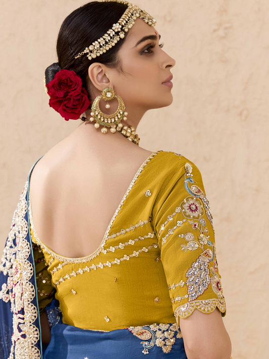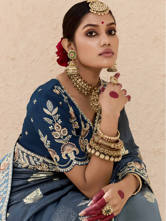 Women's Tussar Silk Blue Woven Design Designer Saree With Blouse Piece