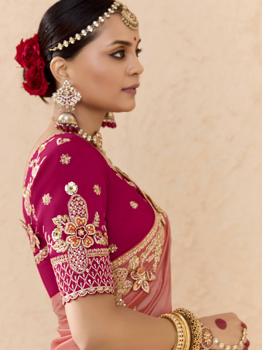 Dhiyona KM Women Shaded Pink & Orange Tussar Silk Saree