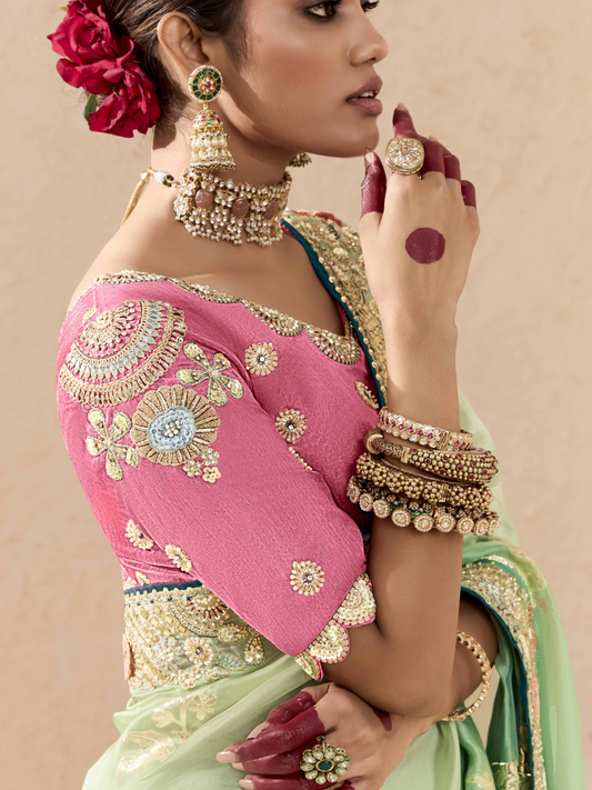 Women's Tussar Silk Light Green Printed Designer Saree With Blouse Piece