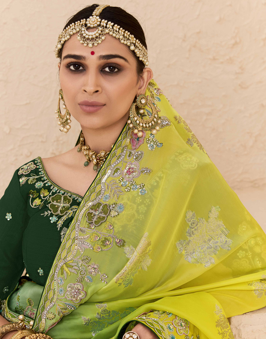 Dhiyona KM Women Shaded Green & Yellow Tussar Silk Saree