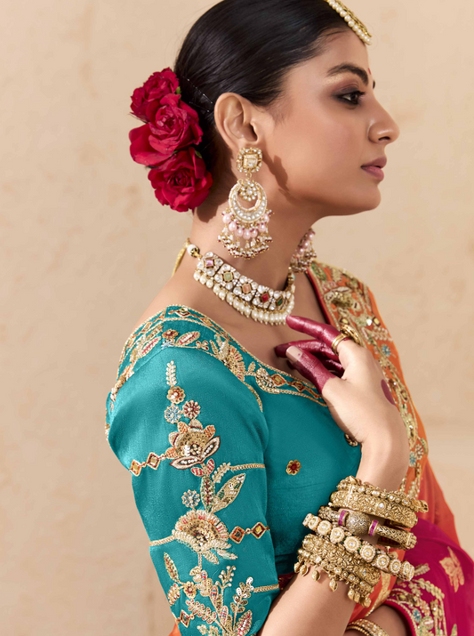 Dhiyona KM Women Peacock Green & Royal Blue Tussar Silk Saree
