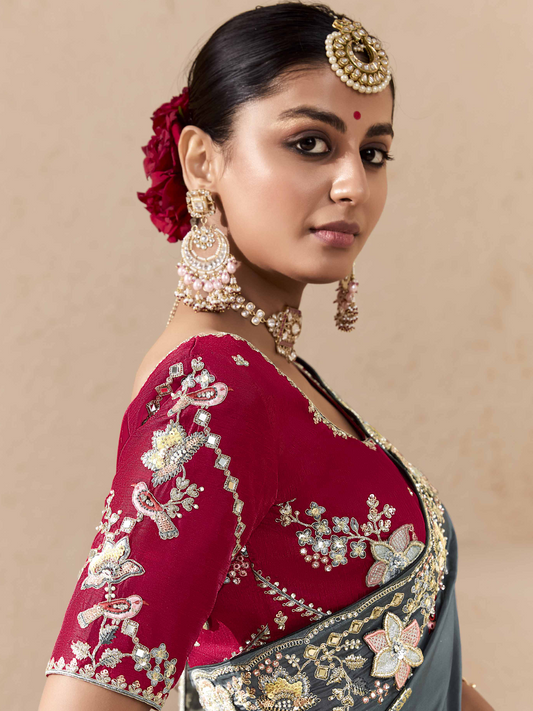 Dhiyona KM Women Shaded Grey Tussar Silk Saree