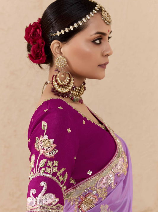 Women's Tussar Silk Lavendar Printed Designer Saree With Blouse Piece