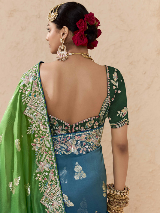 Dhiyona KM Women Shaded Green & Aqua Tussar Silk Saree