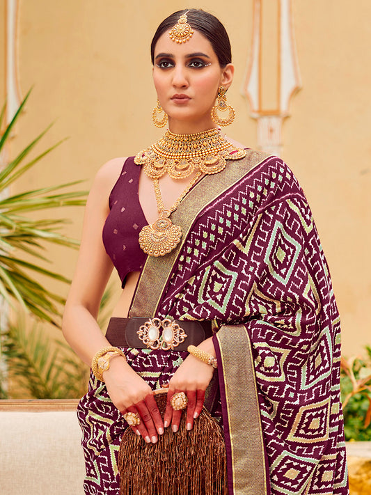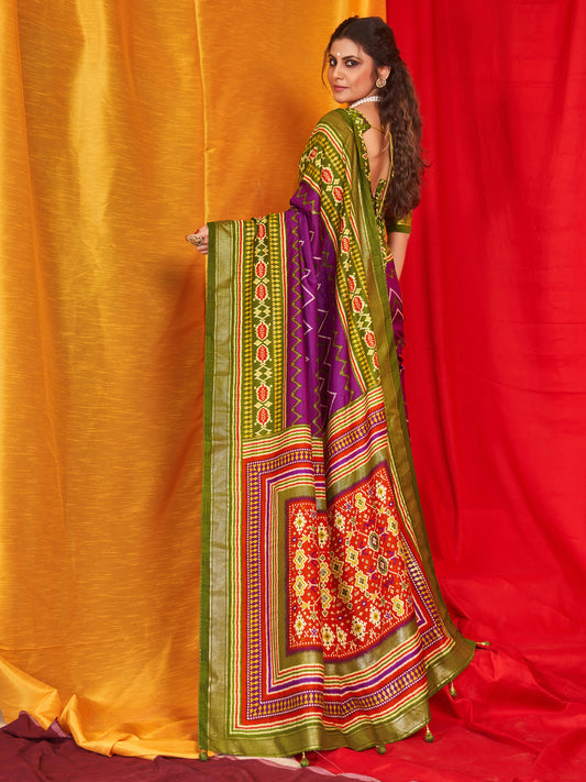 Women's Tussar Silk Purple Printed Designer Saree With Blouse Piece