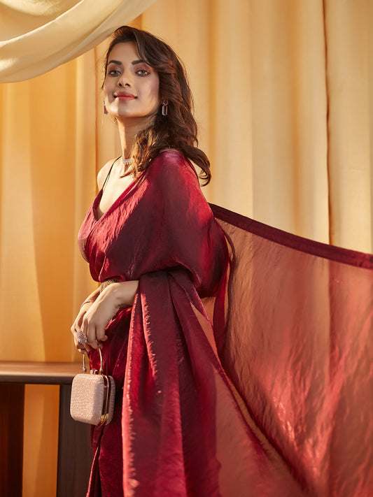Dhiyona KS Women's Sequin Embellished Geometric Printed Satin Saree