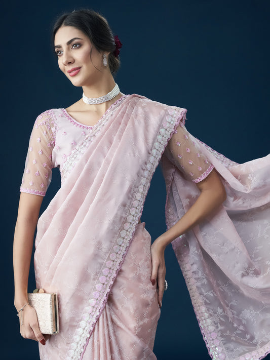 Dhiyona KS Women's Embellished Sequinned With Printed Saree