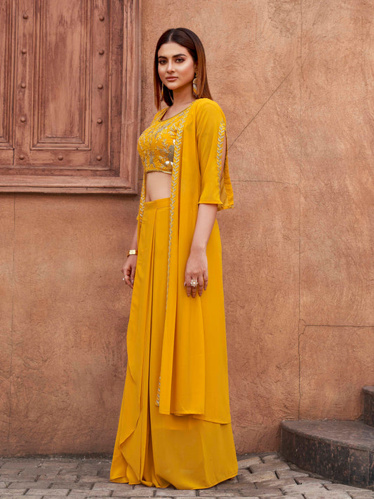 Dhiyona TI Women's Women Yellow Georgette Embroidered Co Ord