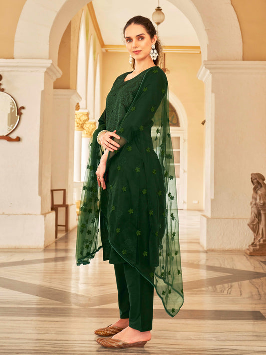 Dhiyona TI Women's Sea Green Embroidery Kurta with Trouser & Dupatta