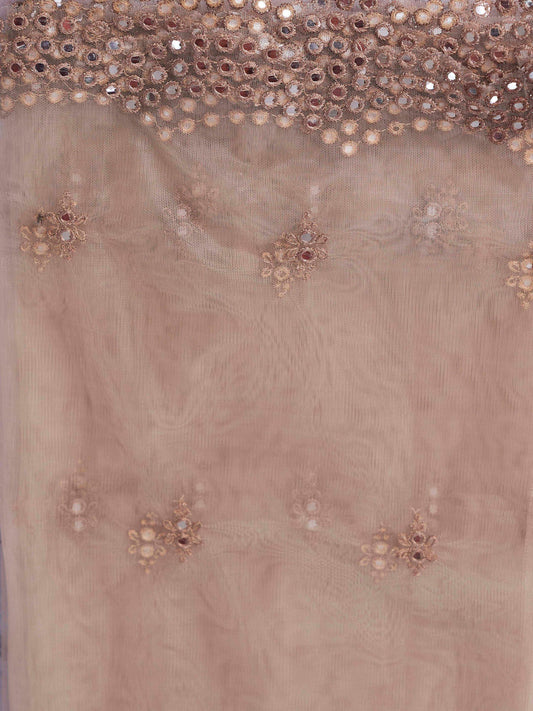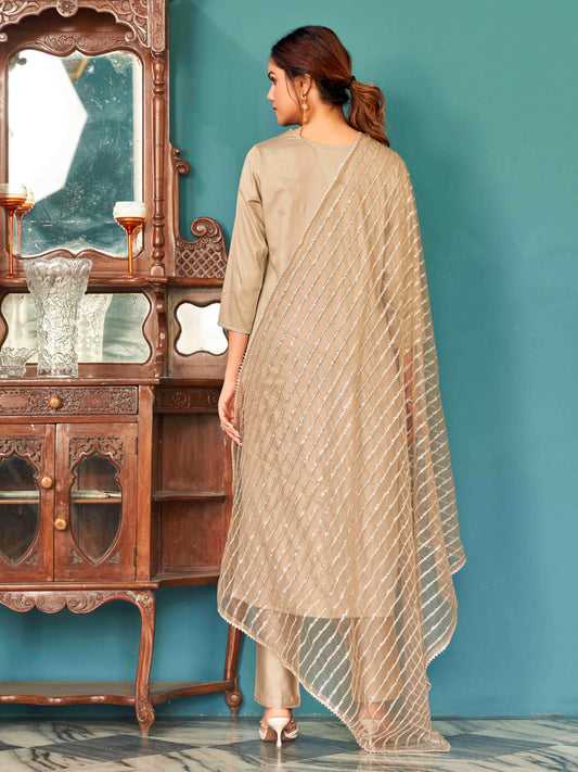 Dhiyona TI Women's Brown Mirror Work Embroidered Kurta and Pants with Dupatta