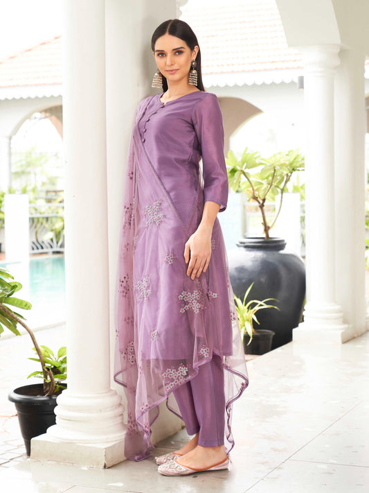 Dhiyona TI Women's Purple Solid Kurta and Pants with Dupatta