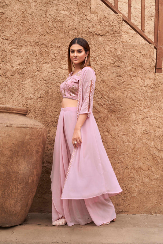 Dhiyona TI Women's Women Pink Georgette Embroidered Co Ord