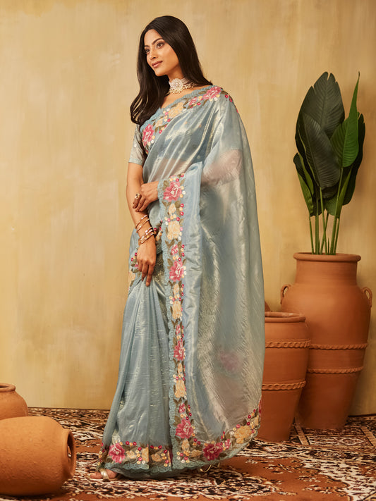 Dhiyona KS Women's Floral Embroidered Organza Saree