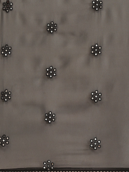 Dhiyona TI Women's Black Georgette Embroidered Mirror-Work Saree with Unstitched Blouse