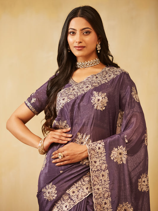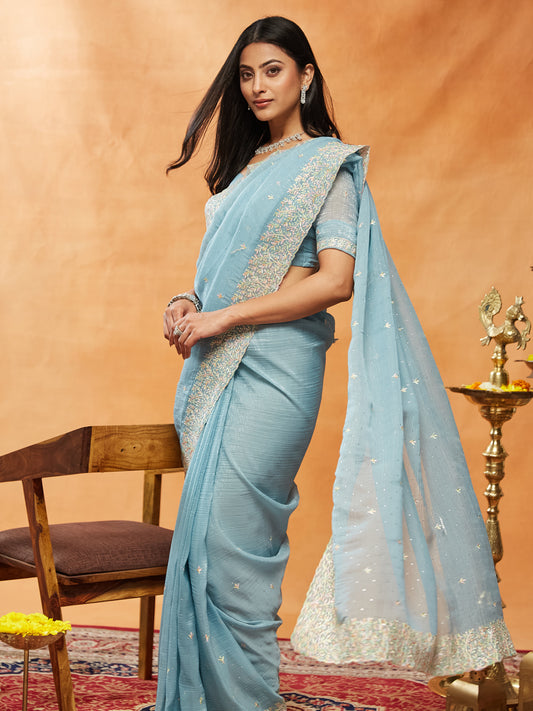 Dhiyona KS Women's Embellished Embroidered Pure Chiffon Saree