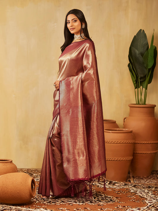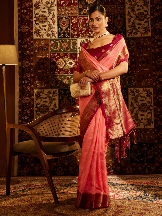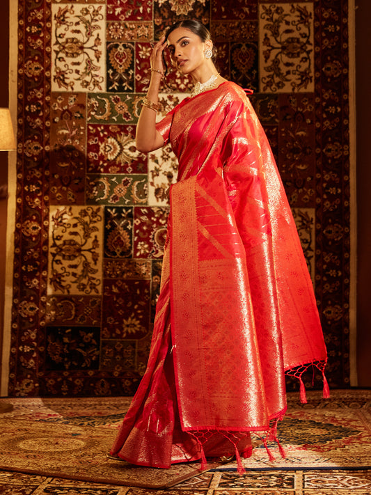 Dhiyona KS Women's Geometric Woven Design Zari Banarasi Saree
