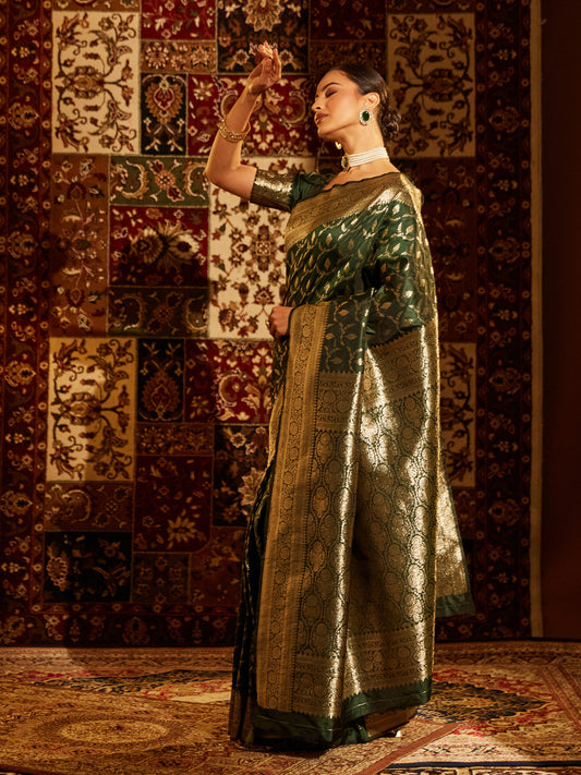 Dhiyona KS Women's Paisley Woven Design Zari Banarasi Saree
