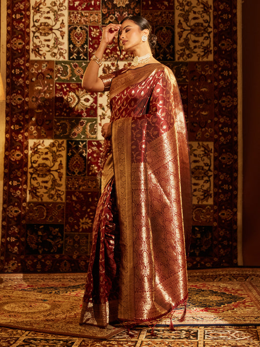 Dhiyona KS Women's Woven Design Zari Banarasi Saree