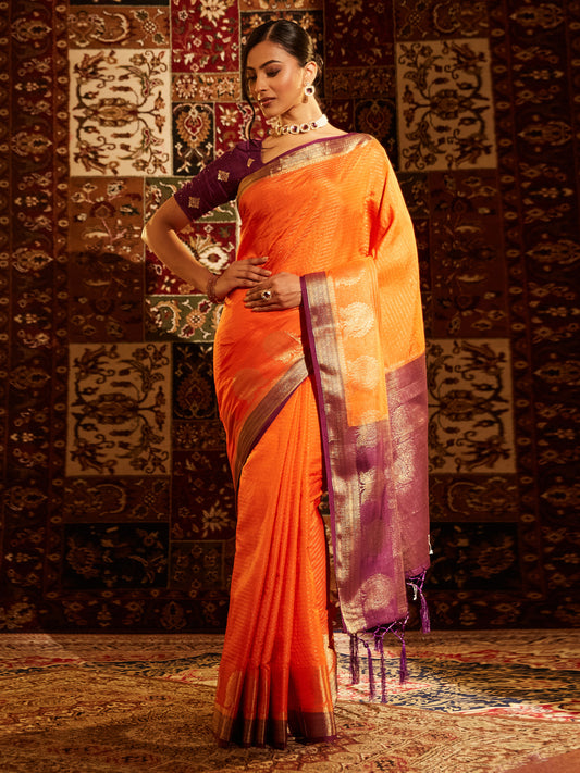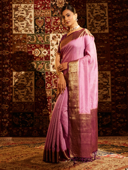 Dhiyona KS Women's Striped Zari Banarasi Saree