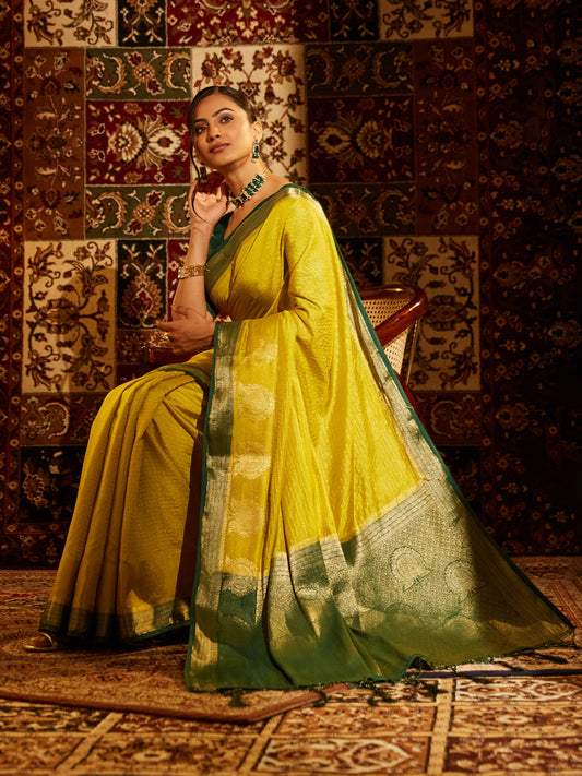 Dhiyona KS Women's Woven Design Zari Banarasi Saree With Unstitched Blouse Piece