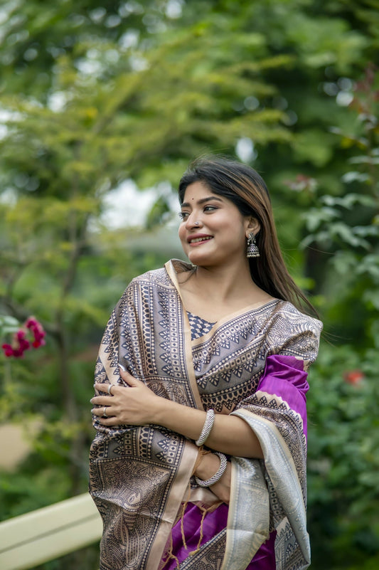 Women Paithani Vani Purple Saree With Unstiched Blouse