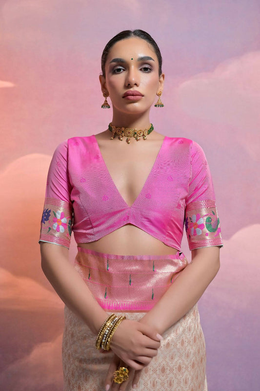 Women Paithani Vani Baby Pink Saree With Unstiched Blouse