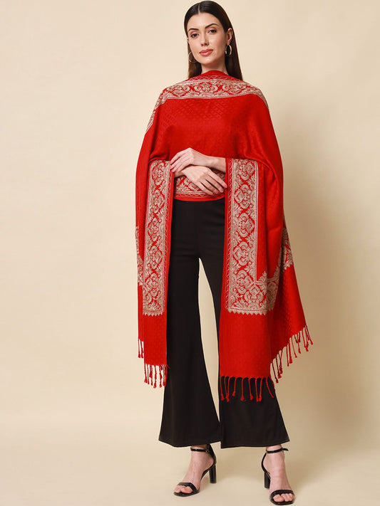Dhiyona PA Women Red & Brown Woven-Design Jamawar Shawl