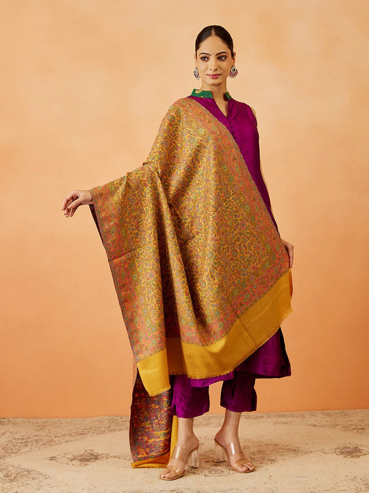 Dhiyona PA Meher Floral Woven Design Kani Woolen Shawl