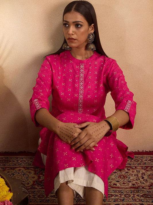 Dhiyona IE Zari Embroidered Floral Printed Gota Patti Detailed A-Line Kurta