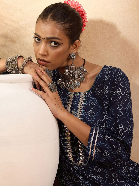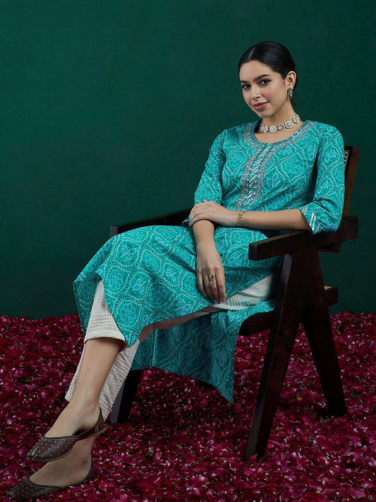 Dhiyona IE Bandahni Printed Calf Length Straight Kurta