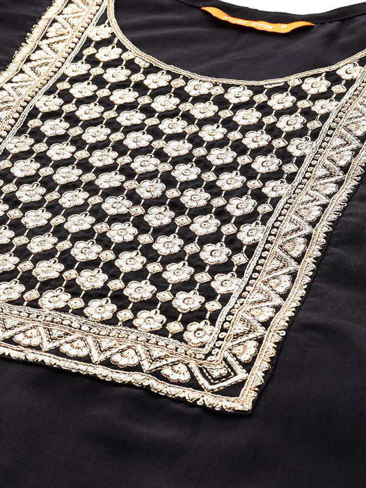 Dhiyona IE Women Black Ethnic Motifs Yoke Design Sequinned Kurta
