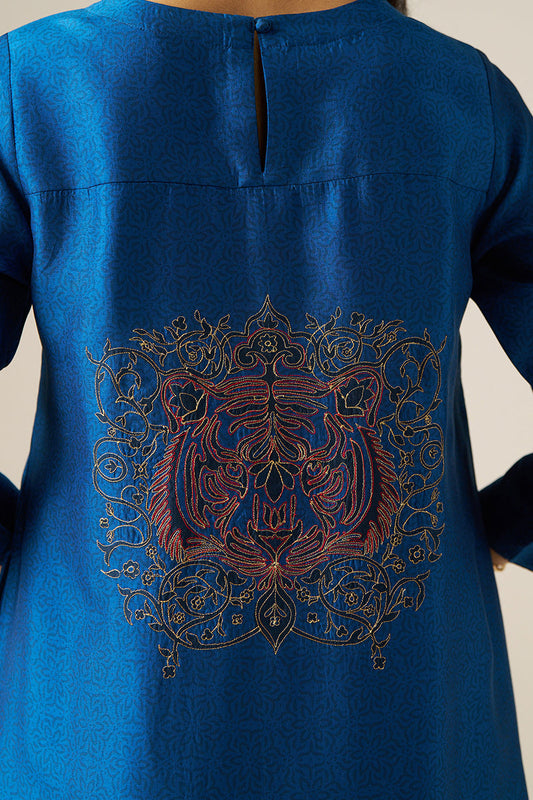 Women's Blue Haze Chanderi Banjara Embroidery Co-ord Set