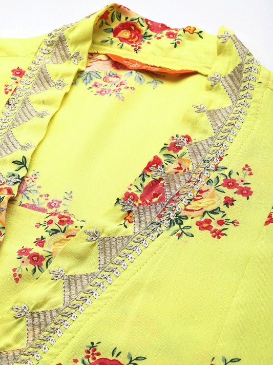 Dhiyona IE Zari Embroidered Floral Printed Gota Patti Detailed A-Line Kurta