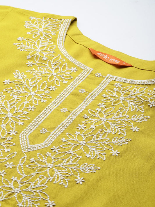 Dhiyona IE Floral Embroidered Thread Work Kurta