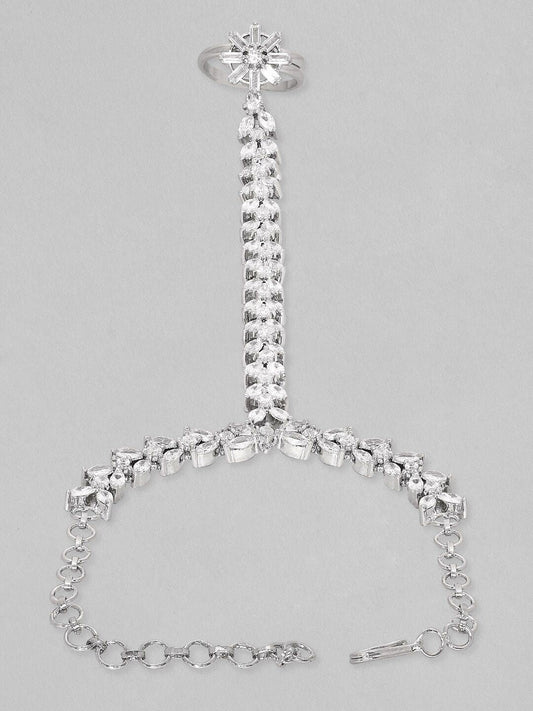 Dhiyona RJ Women's Women Rhodium Plated Cubic Zirconia Studded Ring Bracelet