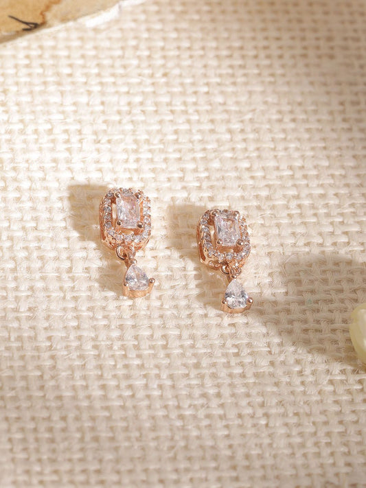 Dhiyona RJ Women's 18K Rose Gold-Plated Cubic Zirconia Studded Floral Shaped Drop Earrings