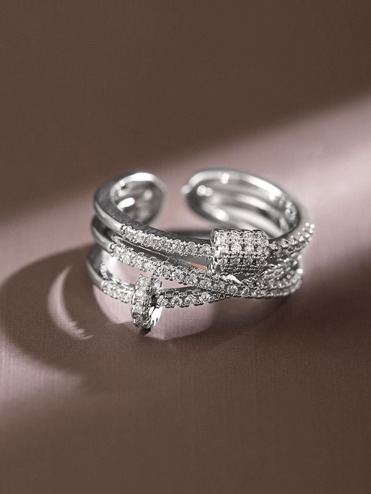 Dhiyona RJ Women's Rhodium Plated Multi Layered Cubic Zirconia Studded Openable Adjustable Ring