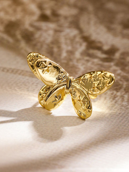 Dhiyona RJ Women's Voguish Bold 18K Gold Plated Embossed Butterfly Statement Ring
