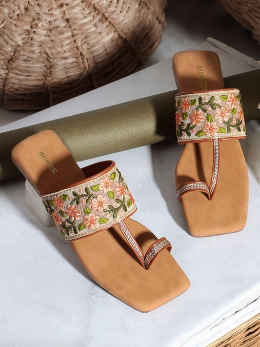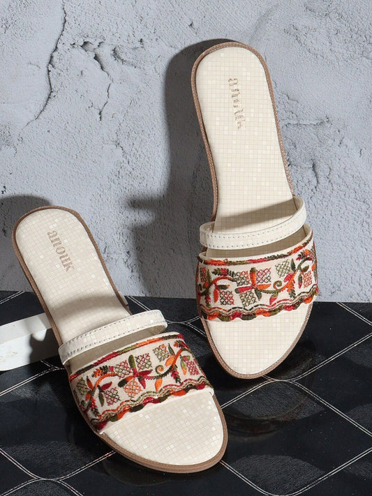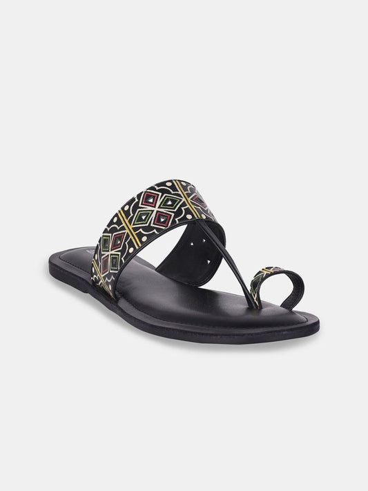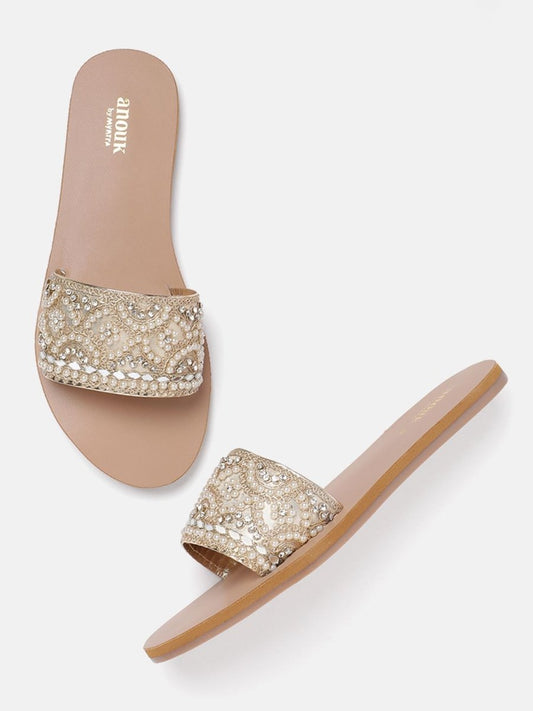 Dhiyona AK Women Ethnic Motif Embellished Open Toe Flats