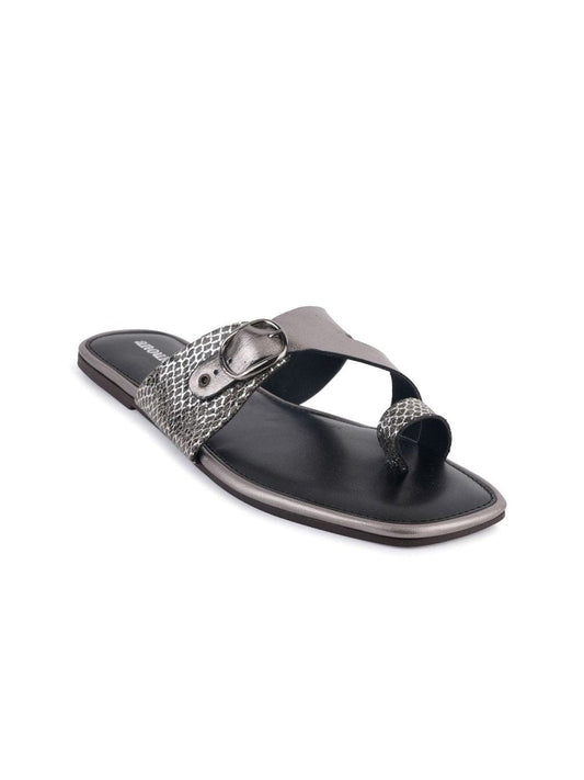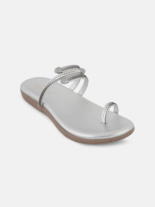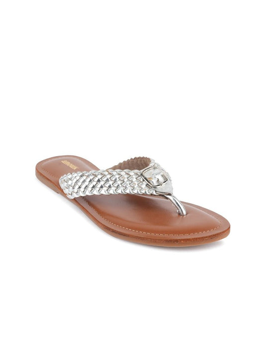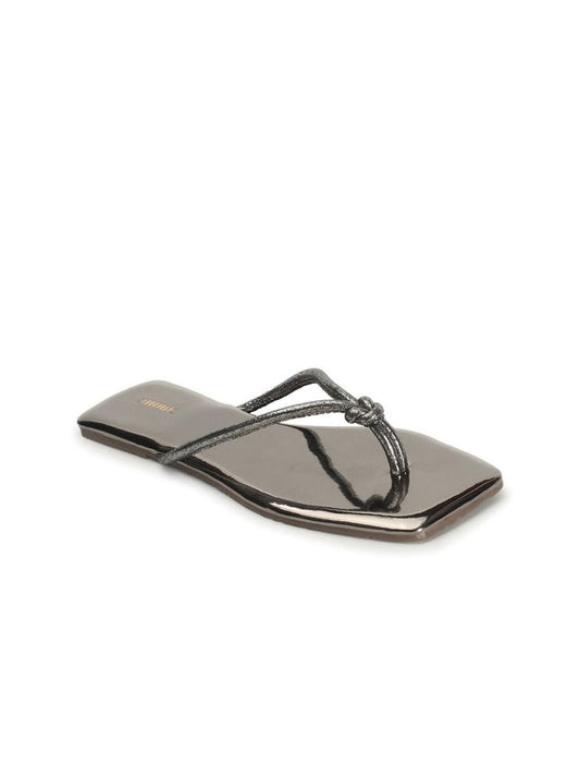 Dhiyona AK Silver-Toned Knotted Textured Open Toe Flats