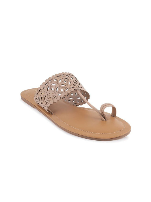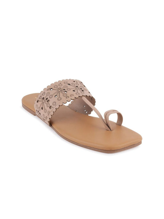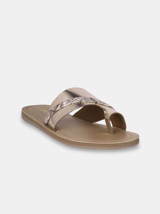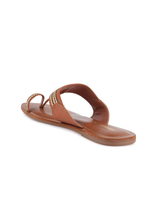 Dhiyona AK Tan Brown Printed Open Toe Flats