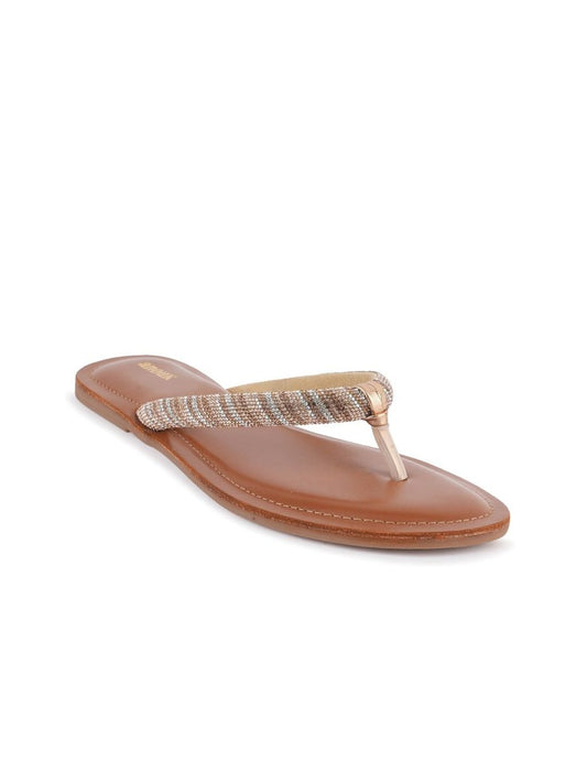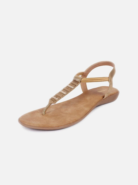 Dhiyona AK Beige Embellished T-Strap Flats With Backstrap