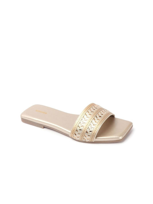 Dhiyona AK Gold-Toned Embellished Open Toe Flats
