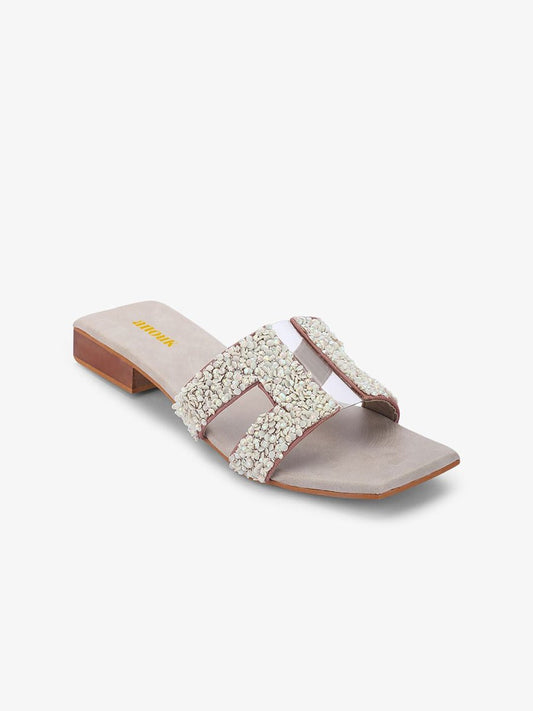Dhiyona AK Cream-Coloured Embellished Open Toe Flats