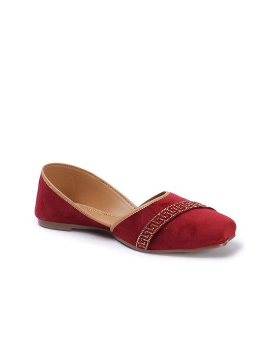 Dhiyona AK Maroon Embellished Round Toe Ballerinas