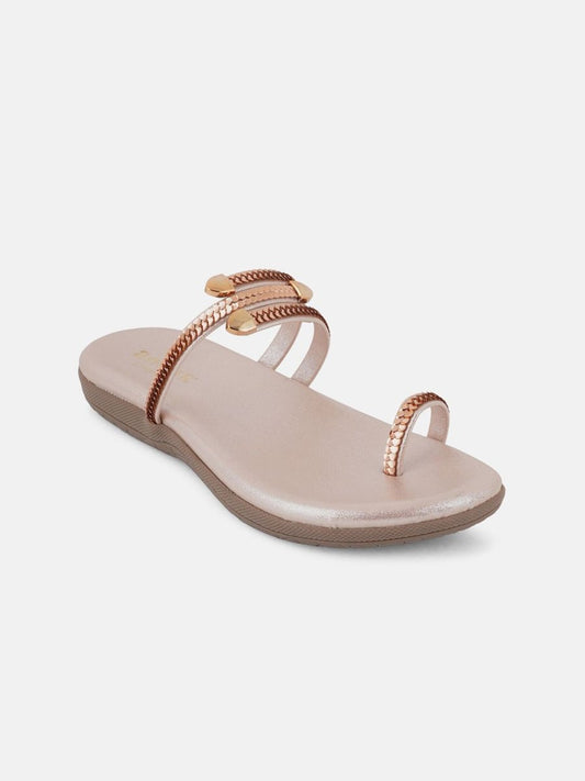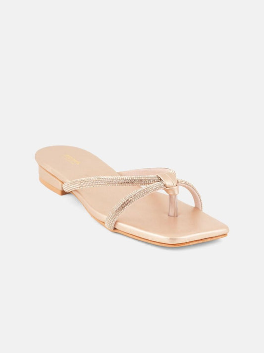 Dhiyona AK Rose Gold-Toned Embellished Open Toe Flats
