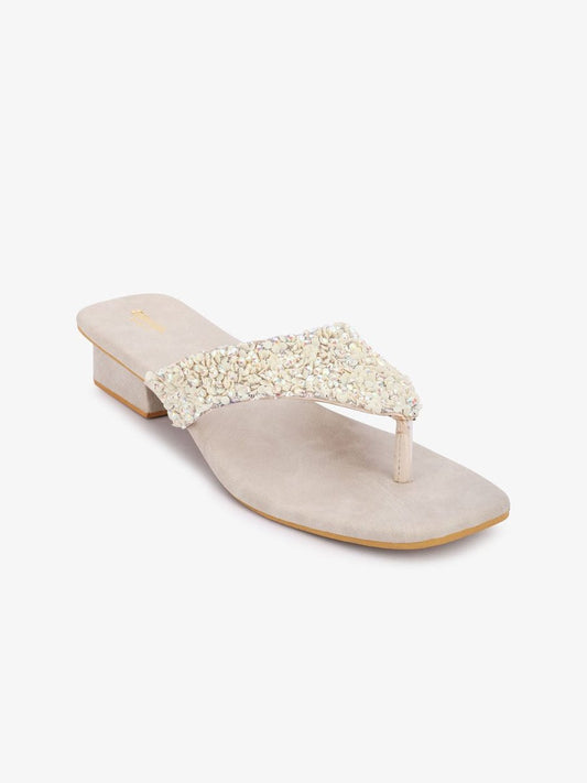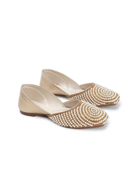 Dhiyona AK Cream-Coloured Embellished Open Toe Flats