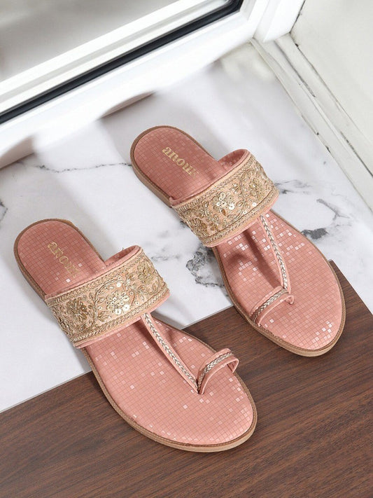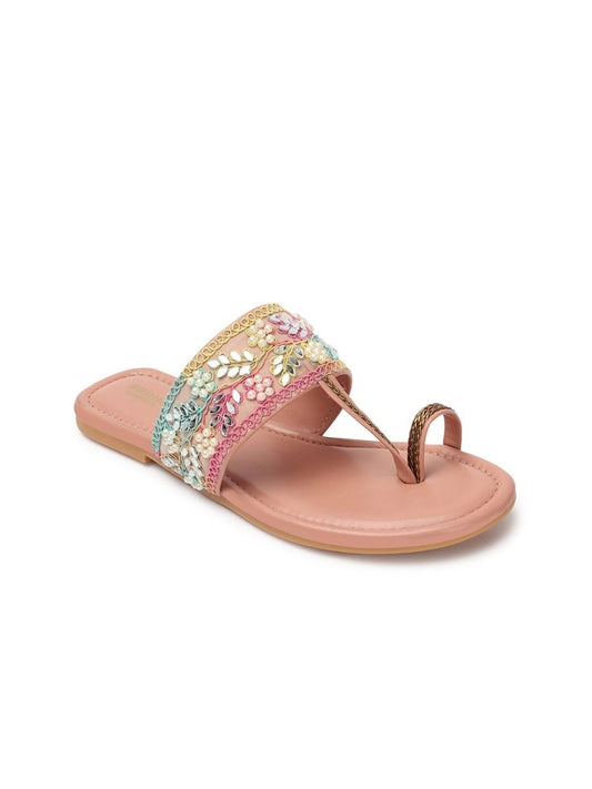 Dhiyona AK Peach-Coloured Embellished One Toe Flats