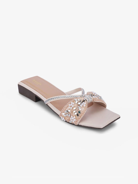 Dhiyona AK Beige Floral Embroidered Open Toe Flats